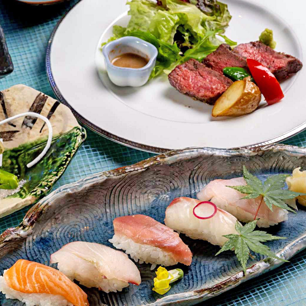 【土日祝日ランチ】お昼の特別会席『光華 こうか』寿司とステーキ